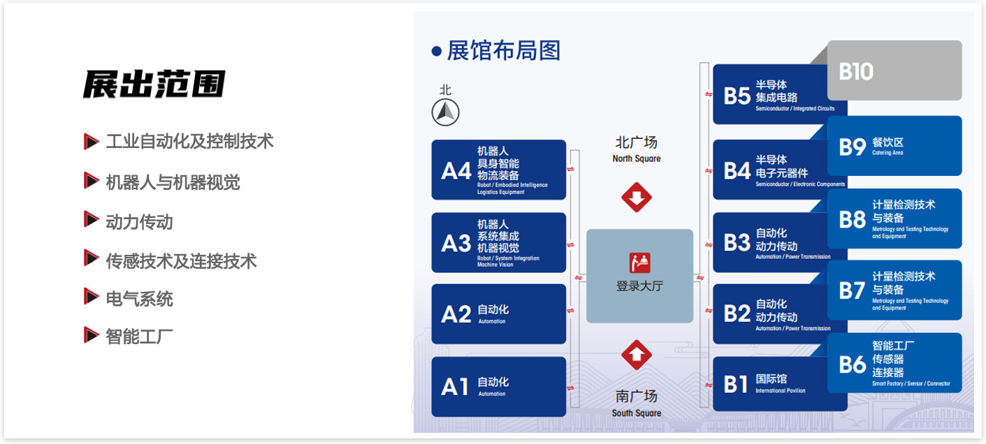 机器人专区 : 人形机器人、工业机器人整机、机器人系统集成、协作 机器人、移动机器人、特种机器人、机械手、工具快换装 置、机器人减速器、机器人防护装备等 机器视觉专区 : 3D/2D 视觉、智能相机、工业镜头、 光源、视觉配件、图像处理软件、视觉检测设备、光学 影像筛选机、读码器、扫描仪、打印机等